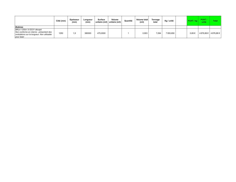 DETAIL VOLUME TONNAGE PRIX A RETROUVER DANS LES PHOTOS