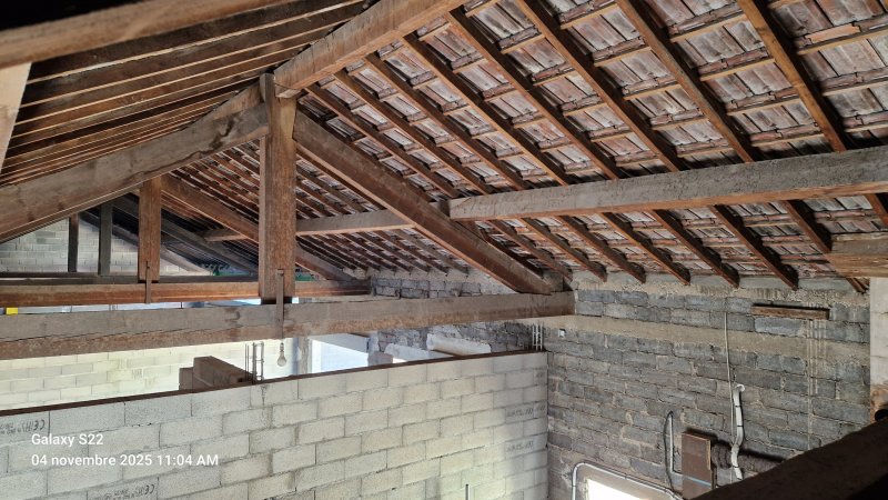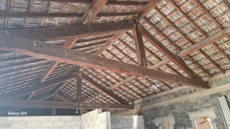 Charpente traditionnelle en sapin de dimensions au sol 25 x 7,65 m (soit + de 190 m2)