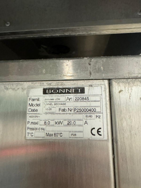 – convoyeur de plateau, lave vaisselle laveuse LCM et tunnel de séchage BONNET