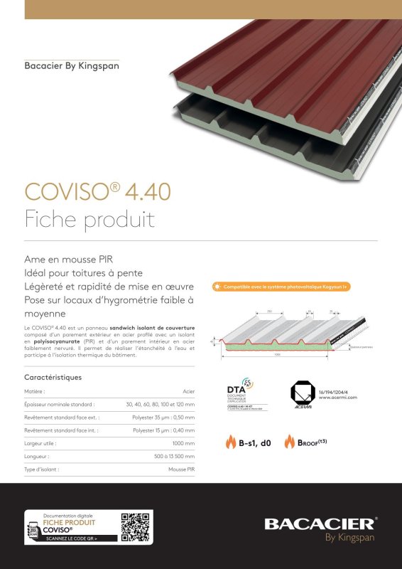 Lot de 13 panneaux sandwich tôle bacacier isolé isolant de couverture KINGSPAN COVISO 4.40