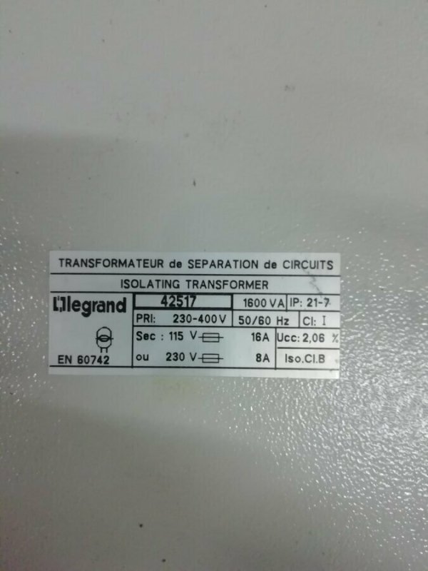 Transformateur commande et séparation des circuits connexion vis primaire 230V à 400V, secondaire 115V à 230V - 1600VA
